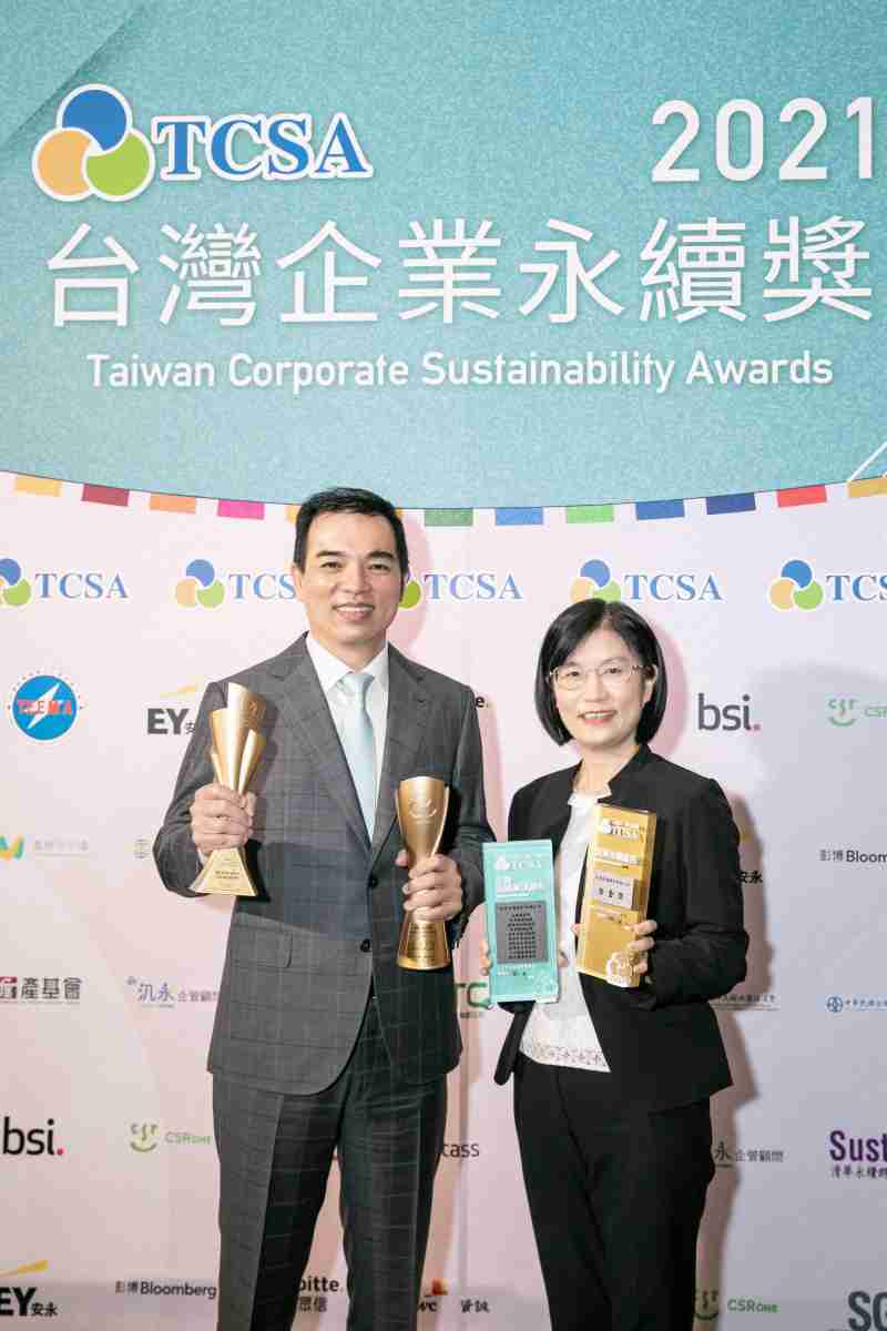 达在台湾永续奖所评比环境、、社会、、、治理等各面向的永续绩效均获高度肯定 (左:888.BY集团电子游戏光电总经理暨营运长柯富仁,,右:888.BY集团电子游戏光电永续长古秀华)