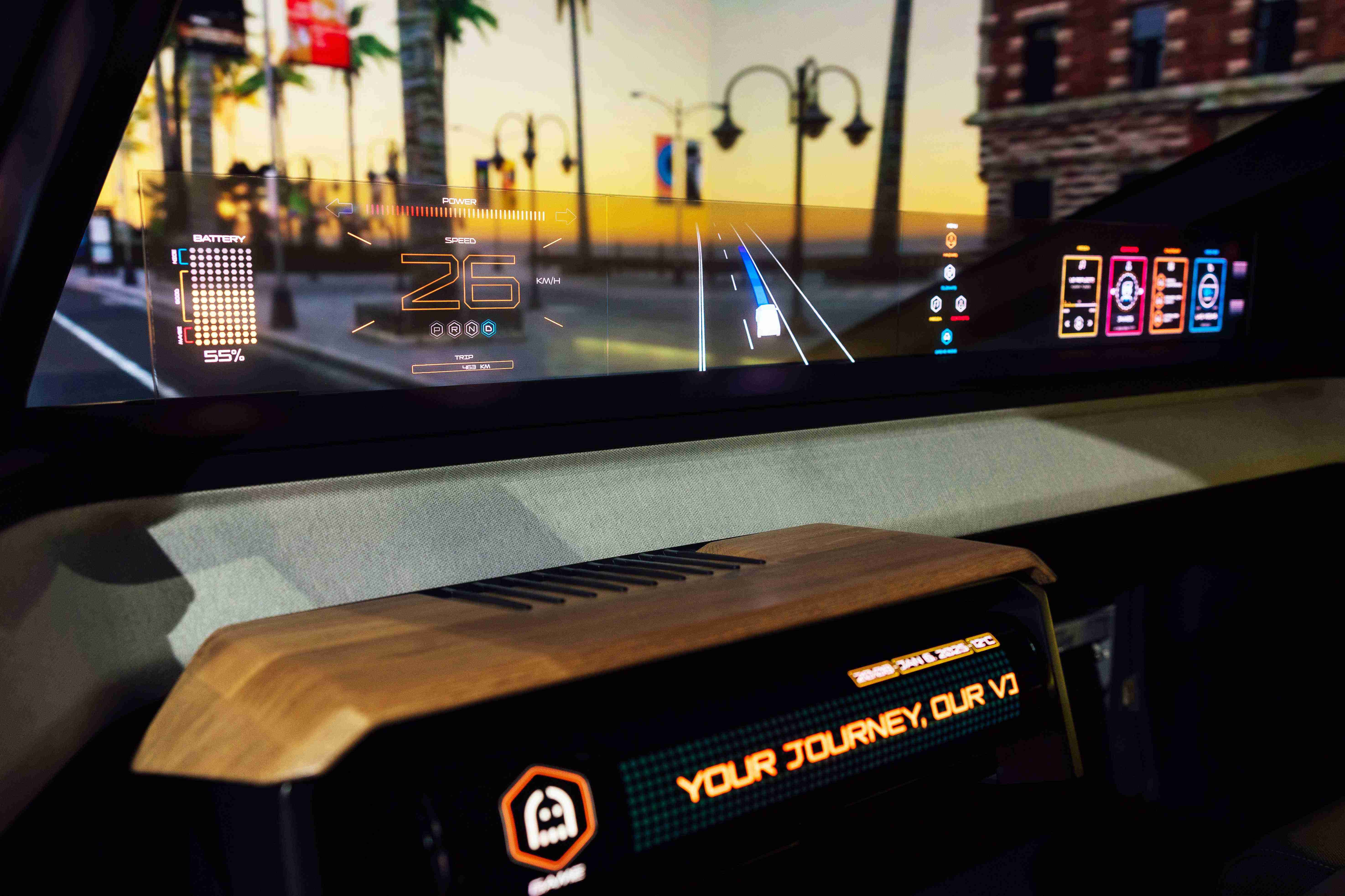 隐藏式智驾介面(Foldable Cruise Pilot)在不同模式下可以切换显示方式,,在手动驾驶模式时,,显示器可以在半收合状态下,,,仍呈现所需资讯;自驾模式时,,,显示器可以完全展开,,,,满足不同的多媒体娱乐需求。。。 888.BY集团电子游戏Smart Cockpit 2025 在车头及车尾搭载合作伙伴Ennostar开发的互动式矩阵显示器(Interactive Matrix Display),,,其突破传设计框架,,利用优化的光源整合技术,,,,提供更高亮度与对比度的显示效果,,营造驾车者个性化风格并传递讯息。。