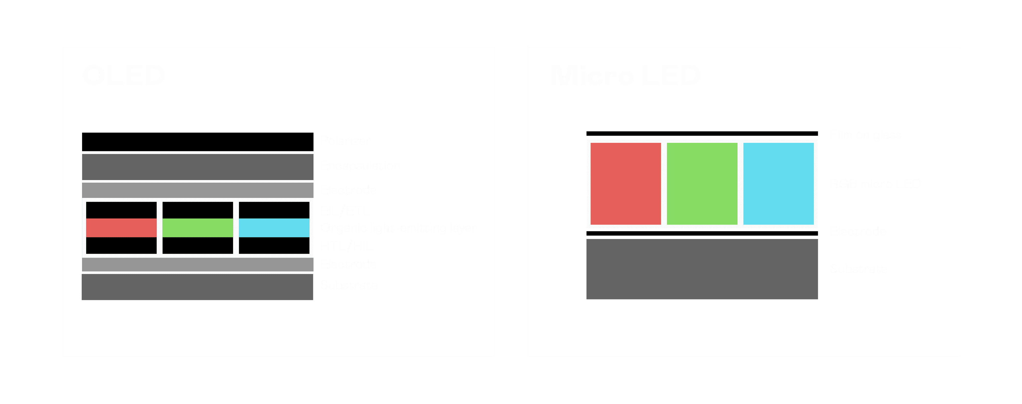 以 LED 做为显示画素,,可让 LED 的发光效率发挥到极致,,,从而让显示器具备优异的亮度表现,,,,不论是在户外或室内,,均具备出众的显示效果。。同时,,,,与使用有机材料的 OLED 相比,,,,LED 具备更稳定、、、寿命更长的特性,,,不仅不会有画面烙印问题,,,而且更不容易出现故障、、、坏点。。。。